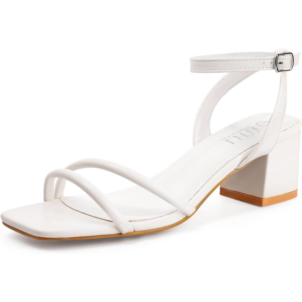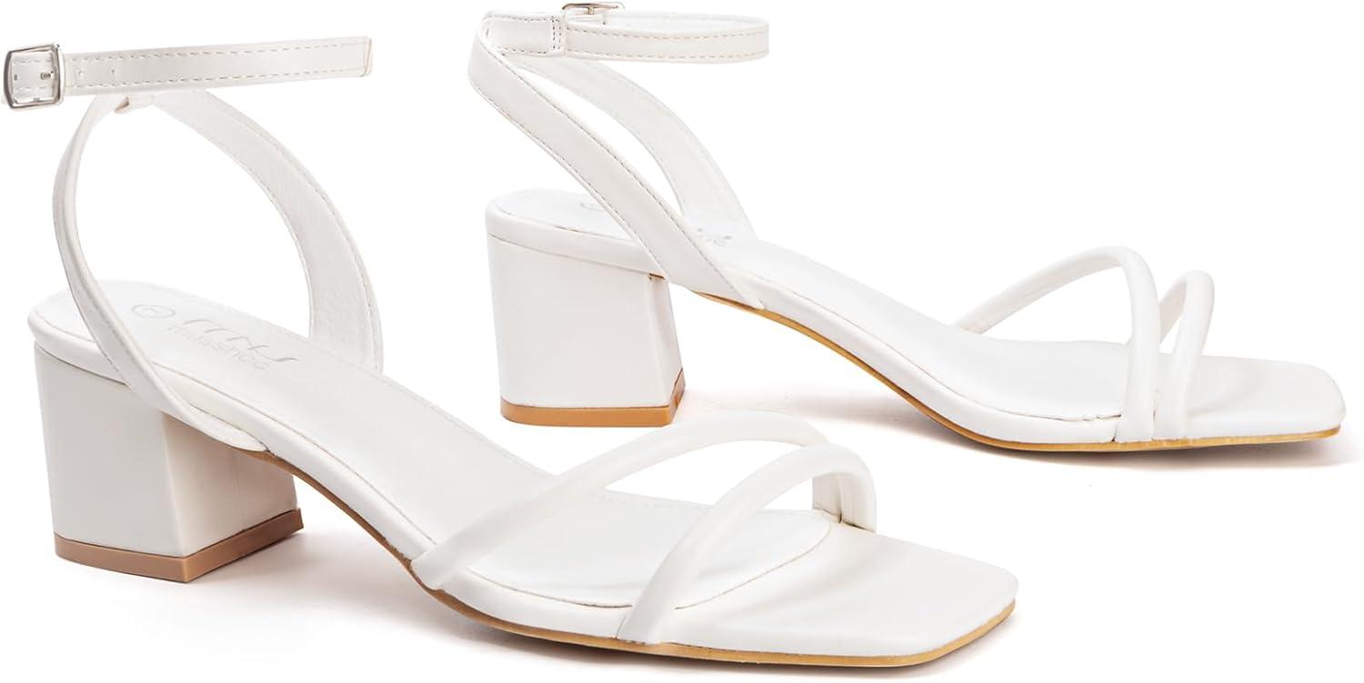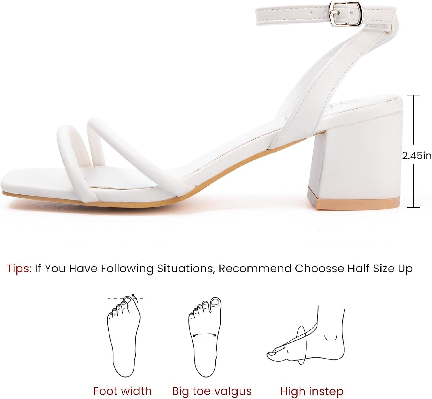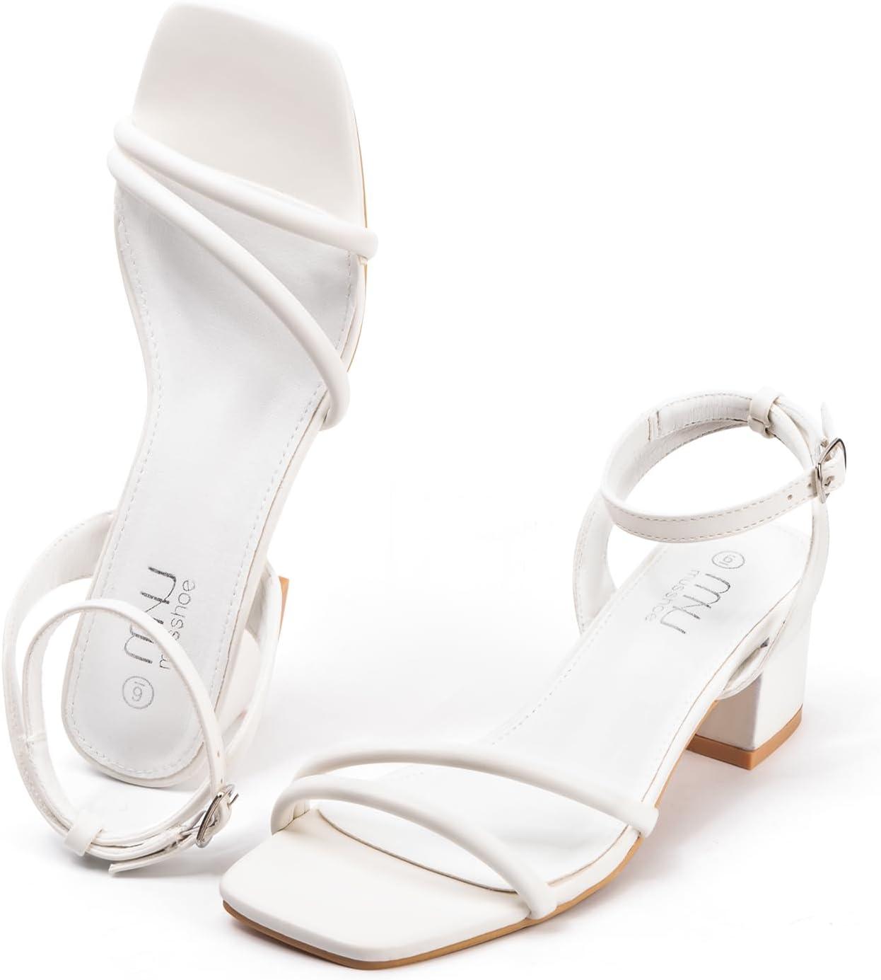 MUSSHOE Block Heeled Prom Heels Sandals for Women Chunky Square Open Toe Strappy High Heels Ankle Buckle Sandals Party Wedding Bridal Dress Shoes(White)