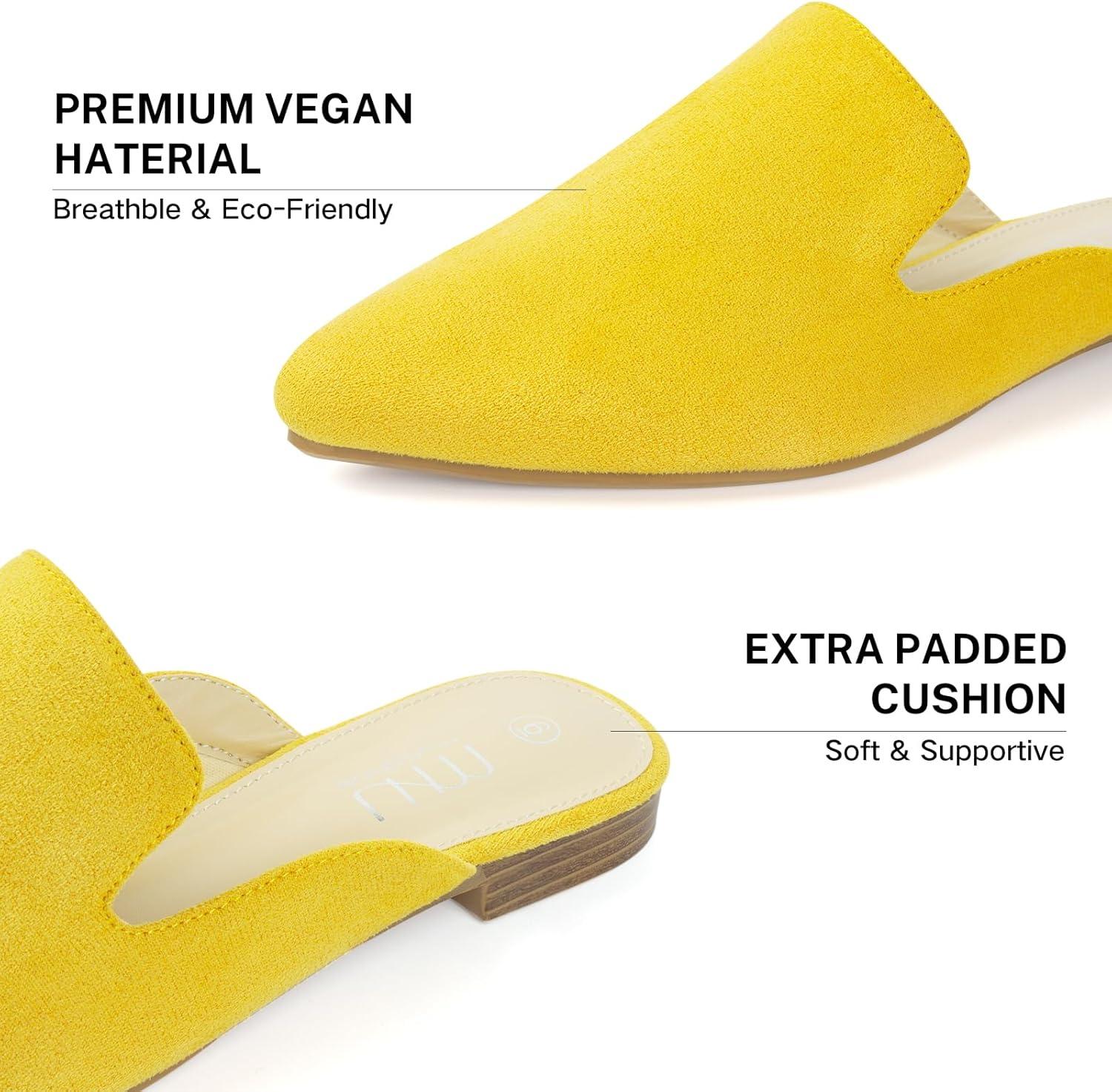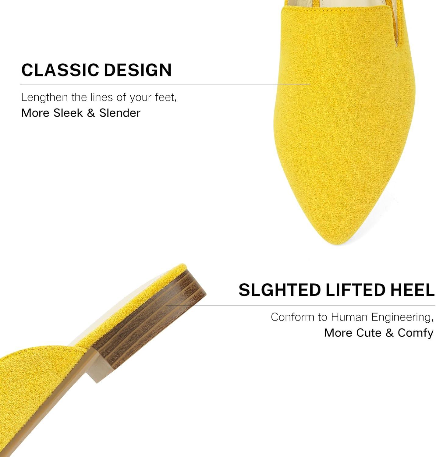 MUSSHOE Mules for Women Flats Comfortable Pointed Toe Women Mules(Yellow Suede)