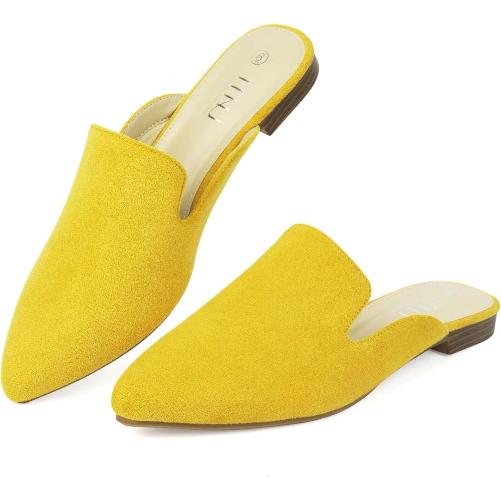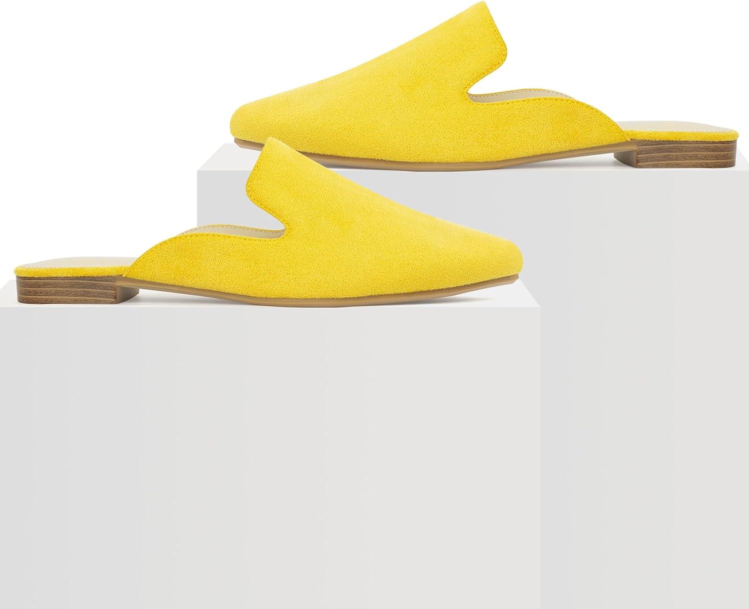 Save big on MUSSHOE Mules for Women Flats Comfortable Pointed Toe Women Mules(Yellow Suede) during our summer blowout sale. Limited quantities available.