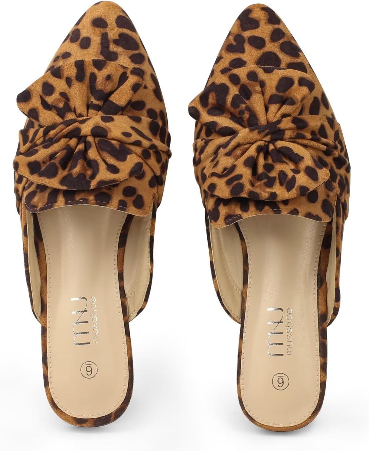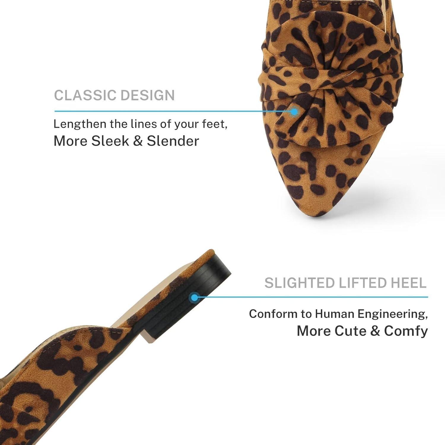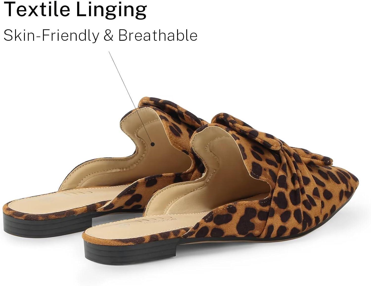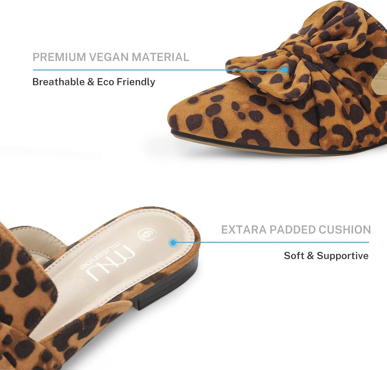 MUSSHOE Women Mules: Pointed Toe Flats – Comfortable Slip on Work Loafers for Professional Woman Aged 25-40 Casual Classic Dressy 2025(Leopard Suede)