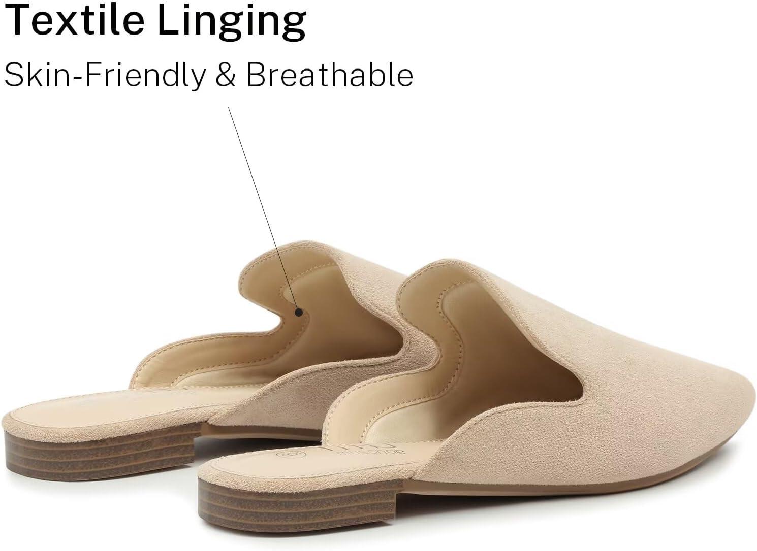 MUSSHOE Women Pointed Toe Mules Flats – Slip on Backless Loafers – Comfortable Work Slide Shoes for Professional Woman Aged 25-40 Casual Classic Dressy(Nude Suede)