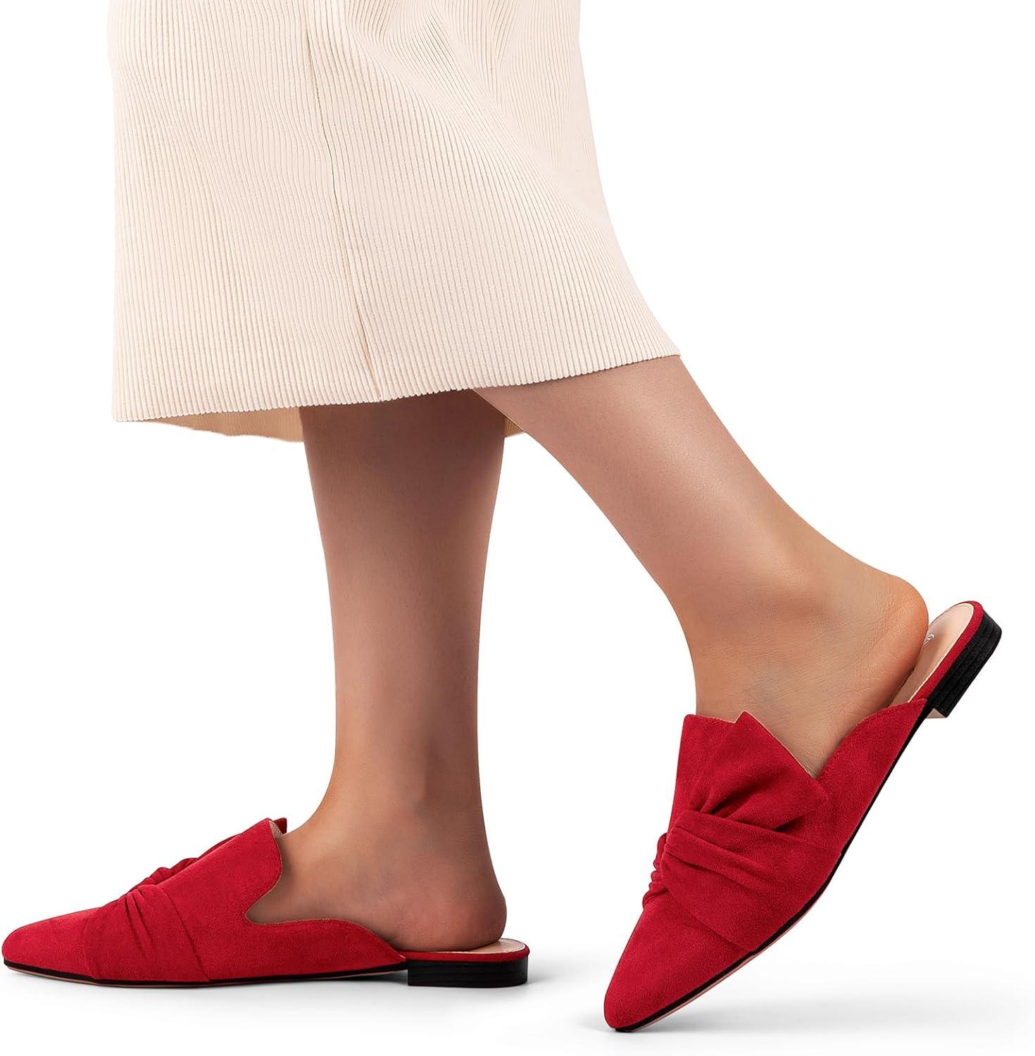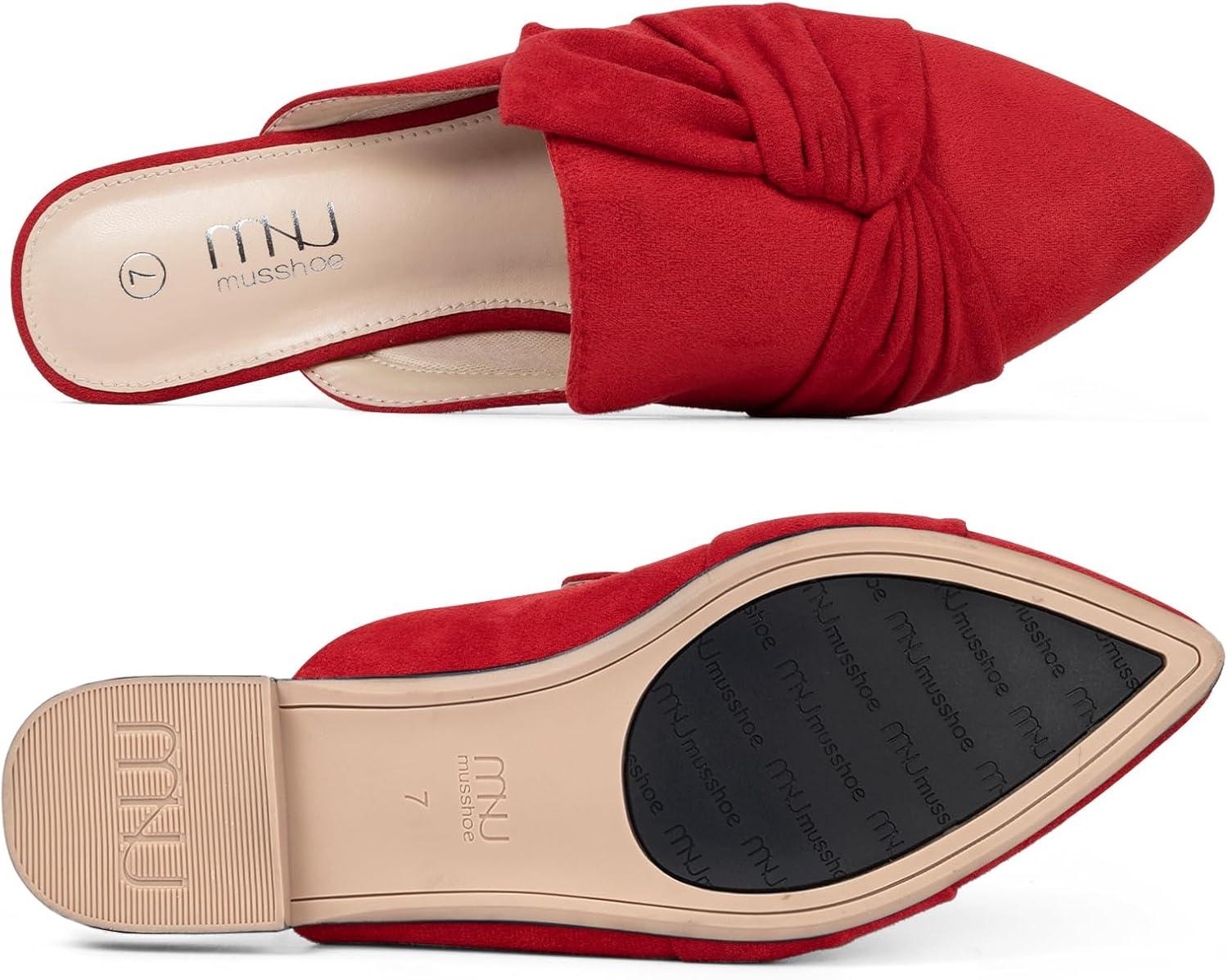 MUSSHOE Women Pointed Toe Mules Flats – Slip on Backless Loafers – Comfortable Work Slide Shoes for Professional Woman Aged 25-40 Casual Classic Dressy(Red Suede)